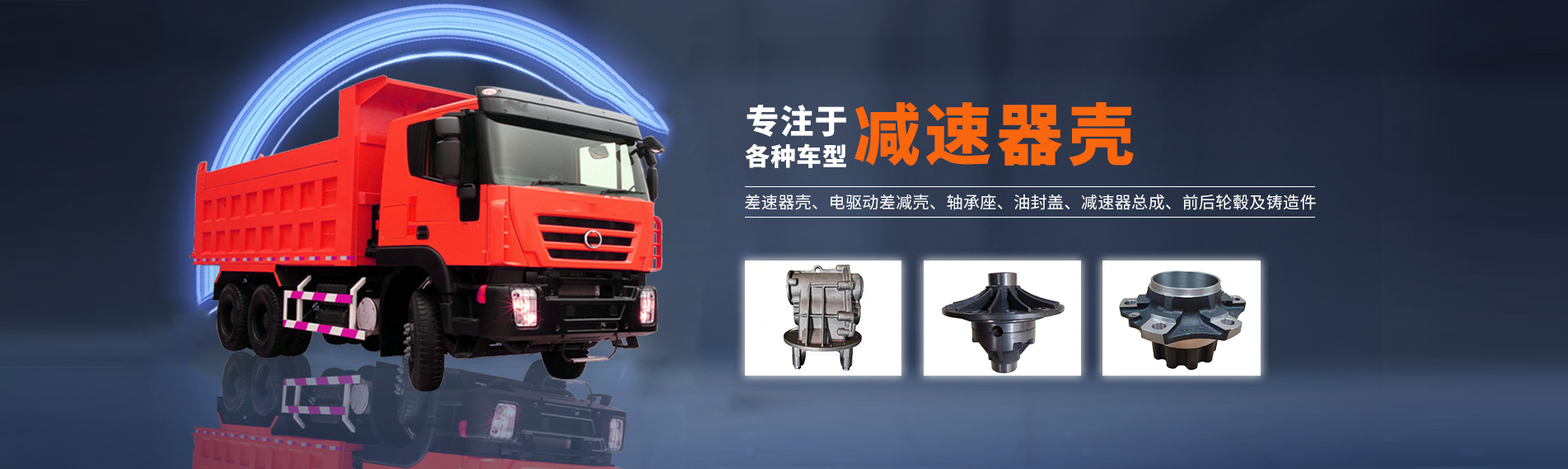 主要產(chǎn)品有各種車型差速器殼、減速器殼、軸承座、油封蓋、減速器總成、前后輪轂及鑄造件。